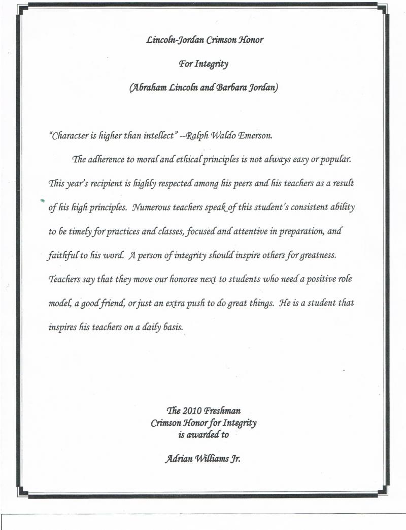 for Integrity 2009-10